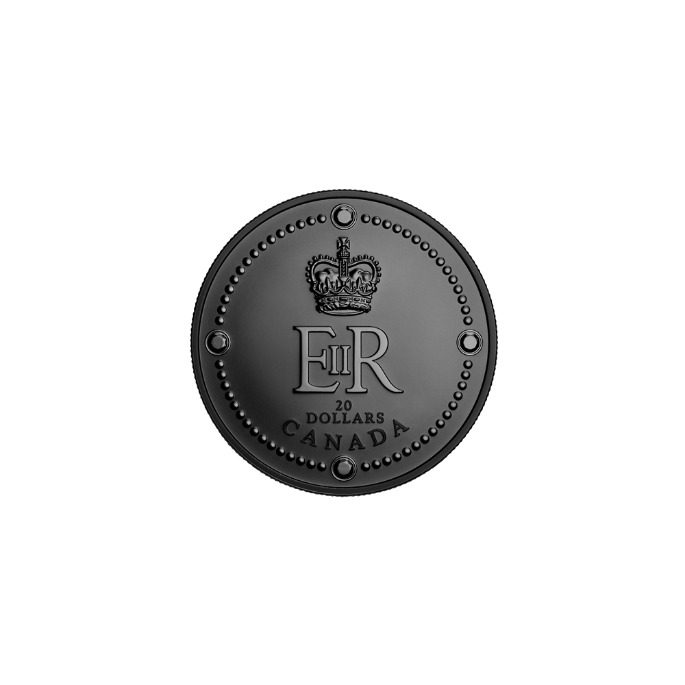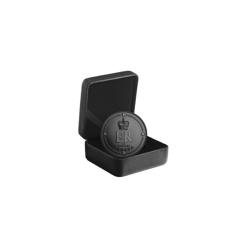Un omaggio cerimoniale alla Regina Elisabetta II placcato in argento nero rodiato puro al 99,99%.
