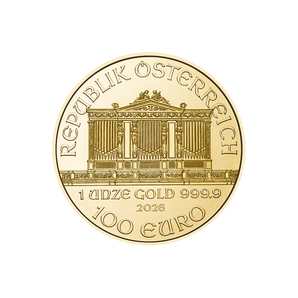 La Filarmonica di Vienna deve il suo nome alla famosa orchestra austriaca, una delle migliori al mondo. Il fronte della moneta d'oro raffigura il grande organo del Musikverein di Vienna. Al di sotto dell'organo sono impressi il peso di 1 oncia, la finezza di 999,9, l'anno di coniazione e il valore nominale di 100 euro. Sopra è impressa l'iscrizione "REPUPLIK ÖSTERREICH". Sul rovescio sono raffigurati alcuni strumenti musicali dell'Orchestra Filarmonica e sul bordo superiore sono riportati il nome dell'orchestra e la moneta d'oro "WIENER PHILHAMRONIKER". Come le monete d'oro di cui sopra, la Filarmonica di Vienna è disponibile nei tagli da 1/2 oz, 1/4 oz, 1/10 oz e 1/25 oz.